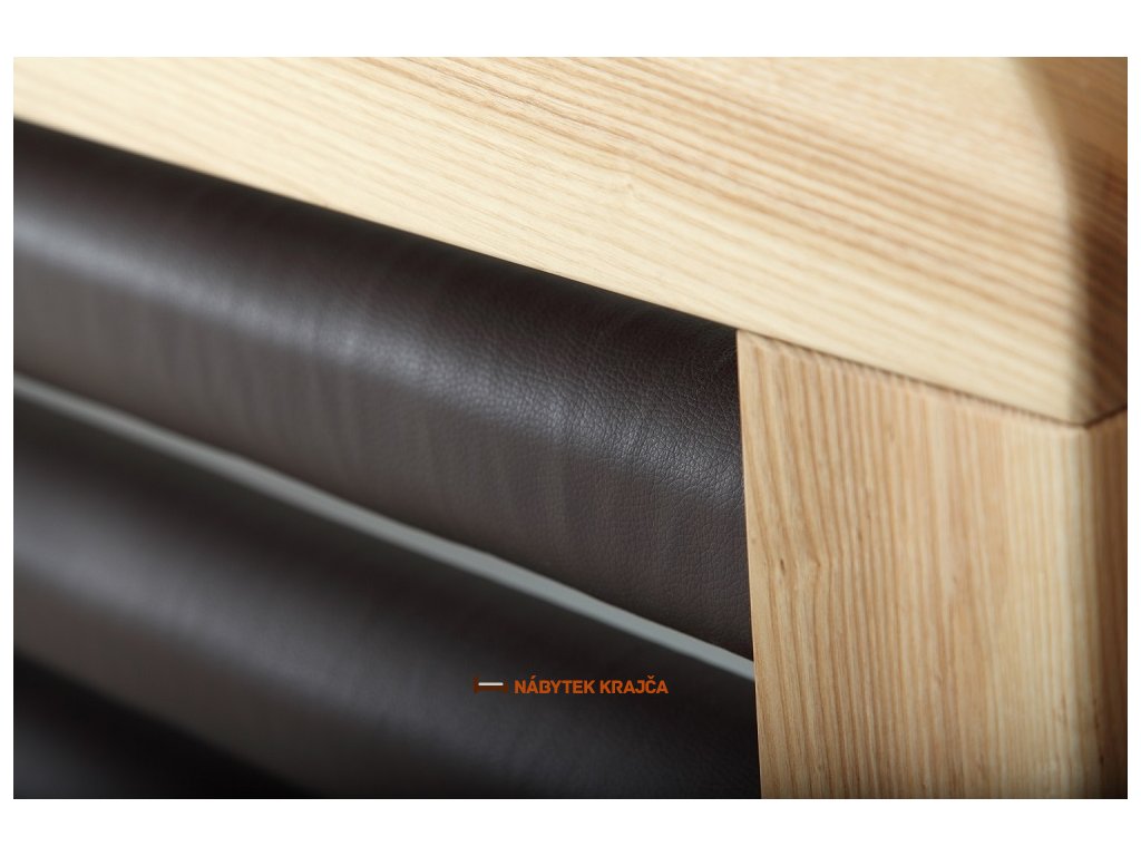 Pro výrobu bylo použité kvalitní jasanové dřevo v kombinaci s koženkou. Tloušťka použitého materiálu je 90 x 90 mm a 180 x 42 mm. Výplně postele tvoří válce o průměru 80 mm, jsou velmi měkké, potažené koženkou, která je jemná a příjemná na dotek. Hrany postele jsou dokonale zakulaceny a zabroušeny. Všechny části jsou spojeny pevnými spoji a speciálním kováním.